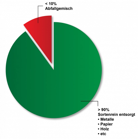 Mit einer Quote unter 90 % bekommen Sie von uns einen Nachweis, den Sie im Rahmen von Umweltzertifizierungen und als Nachweis für die Behörde und die Öffentlichkeit verwenden können. Mit diesem Nachweis haben Sie keine Privilegien zur Entsorgung der Abfallgemische in der Verbrennung.