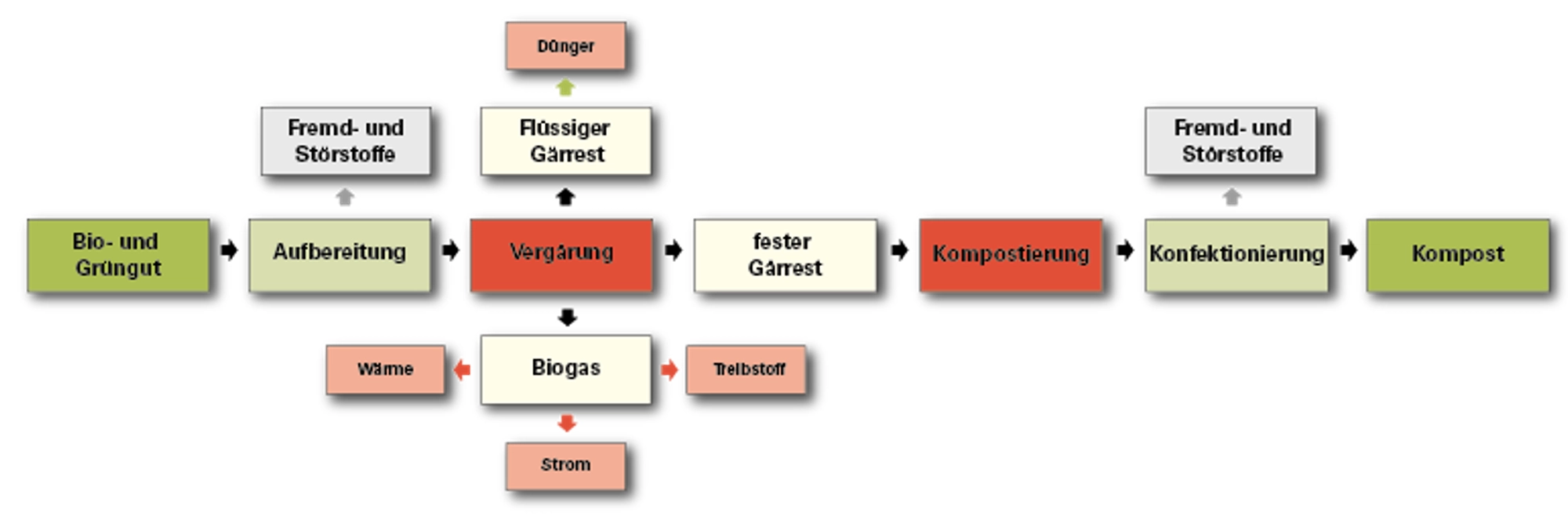 Die Vergärung von Bioabfällen und Grüngut ist grundsätzlich ein Verfahren zur stofflichen Verwertung.