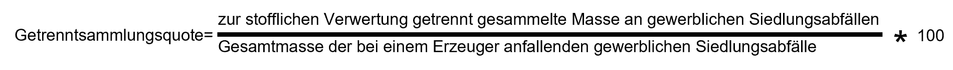 Der Quotient der zur stofflichen Verwertung getrennt gesammelten Masse an gewerblichen Siedlungsabfällen und der Gesamtmasse der bei einem Erzeuger anfallenden gewerblichen Siedlungsabfälle multipliziert mit 100 Prozent,